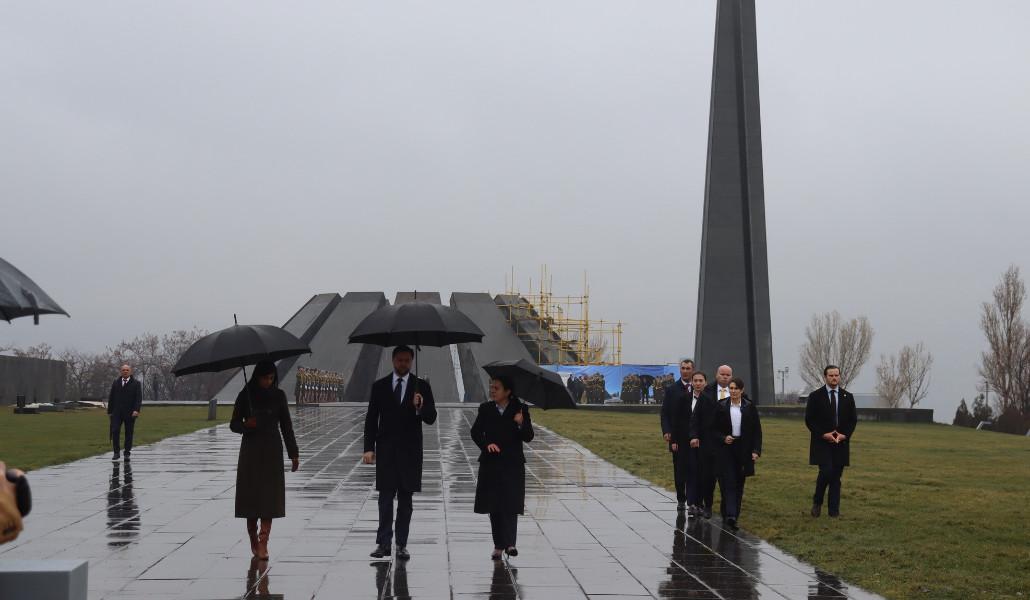 Ջեյ Դի Վենսը ծաղկեպսակ է դրել Հայոց ցեղասպանության զոհերի հիշատակը հավերժացնող հուշակոթողին, այնուհետև հյուրերը ծաղիկներ են դրել անմար կրակի մոտ և մեկ րոպե լռությամբ հարգել Հայոց ցեղասպանության անմեղ զոհերի հիշատակը: