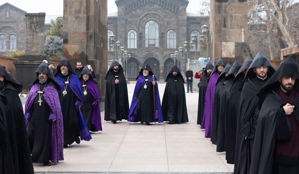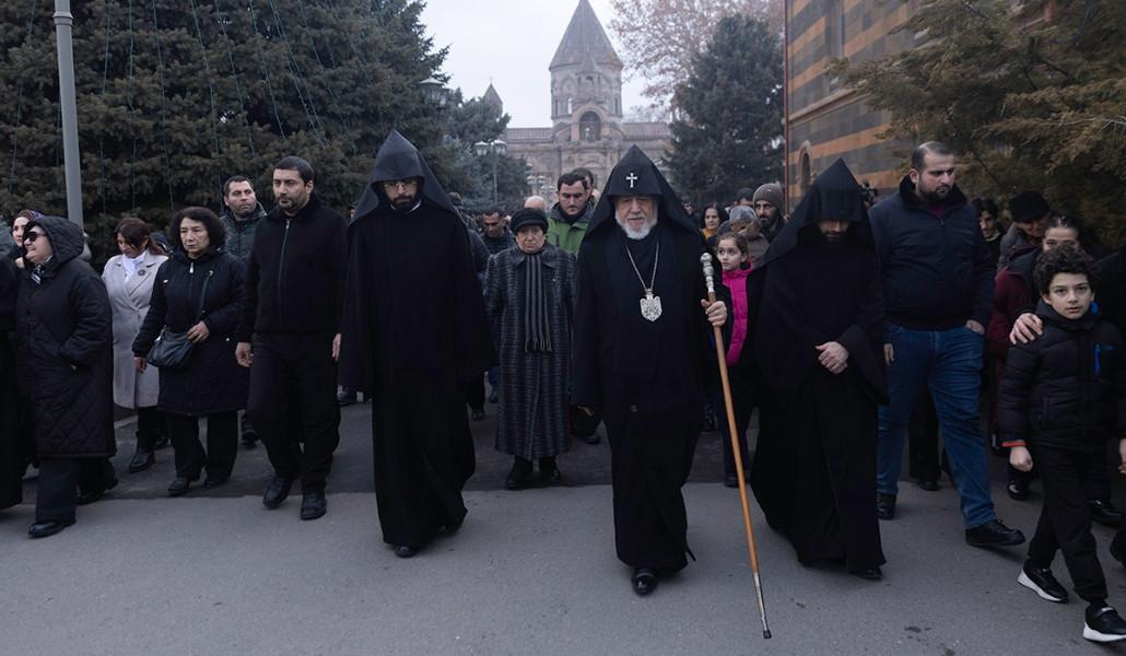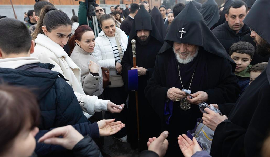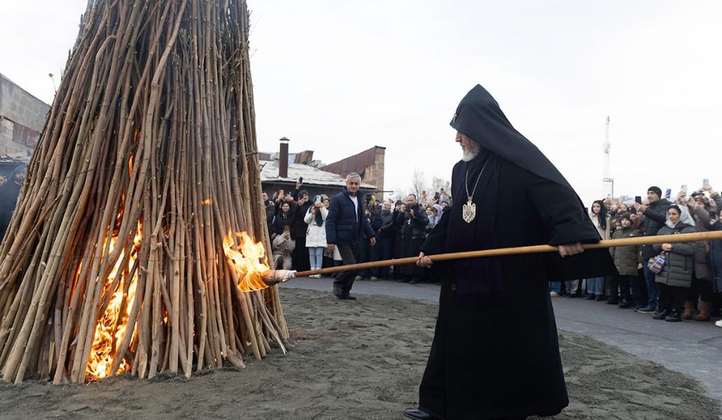 Մայր տաճարի բակում Վեհափառ Հայրապետի ձեռամբ վառվեց Տեառնընդառաջի խարույկը (տեսանյութ)