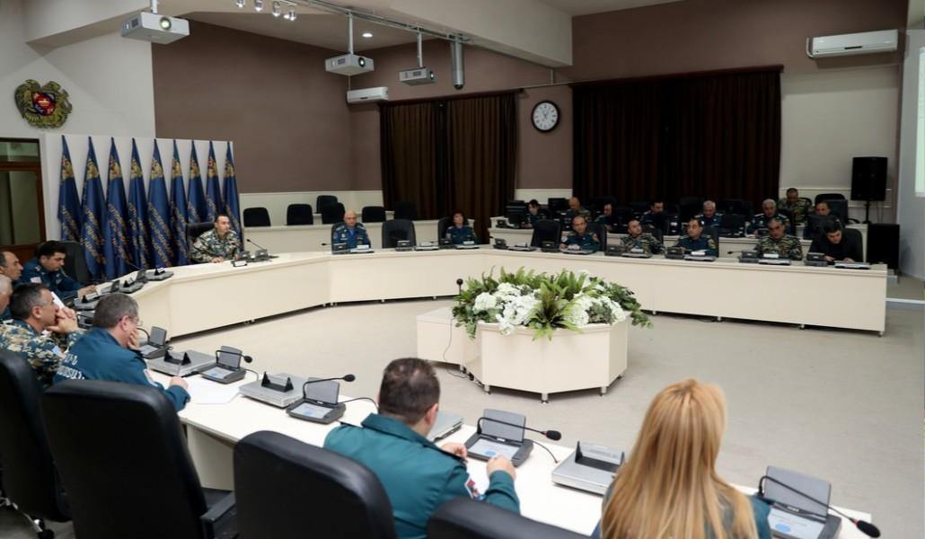 Поддержи А1+!В Министерстве по чрезвычайным ситуациям РА 3 мая состоялось расширенное еженедельное совещание спасательной службы, которое вел директор службы, полковник с/с Артак Наапетян.