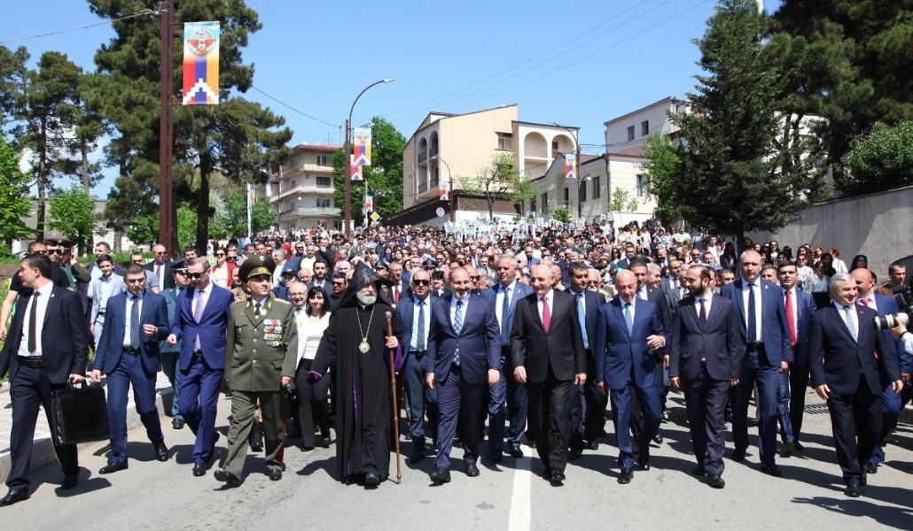 Поддержи А1+!9 мая состоялась встреча Президента Бако Саакяна с Премьер-министром Республики Армения Николом Пашиняном, прибывшим в Арцах в рамках праздничных мероприятий, посвященных Дню Победы, 27-летию создания Армии обороны Республики Арцах и освобождения г. Шуши.
