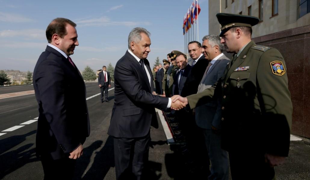 Поддержи А1+!Делегация министерства обороны России во главе с министром обороны РФ, генералом армии Сергеем Шойгу 29 октября прибыла в Армению с официальным визитом. После официальной церемонии встречи министр обороны Армении Давид Тоноян и министр обороны РФ, генерал армии Сергей Шойгу провели встречу тет-а-тет, затем состоялась встреча в расширенном формате с участием делегаций.