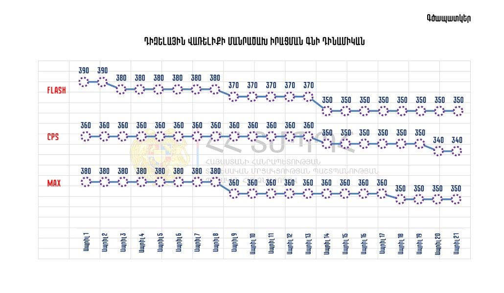 Отмечается, что наиболее заметным является снижение цен на дизельное топливо, которое составило 20 - 40 драмов за литр.