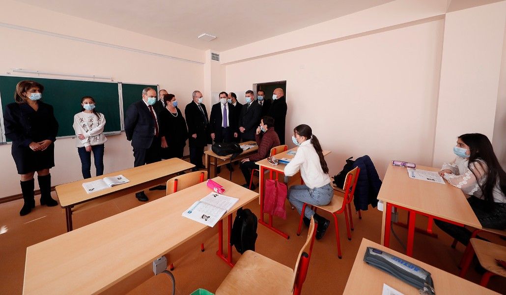 Премьер-министр в сопровождении министра территориального управления и инфраструктур Сурена Папикяна, министра образования, науки, культуры и спорта Ваграма Думаняна, губернатора Гегаркуника Гнела Саносяна посетил среднюю школу № 2 и ознакомился с работами по реконструкции.
