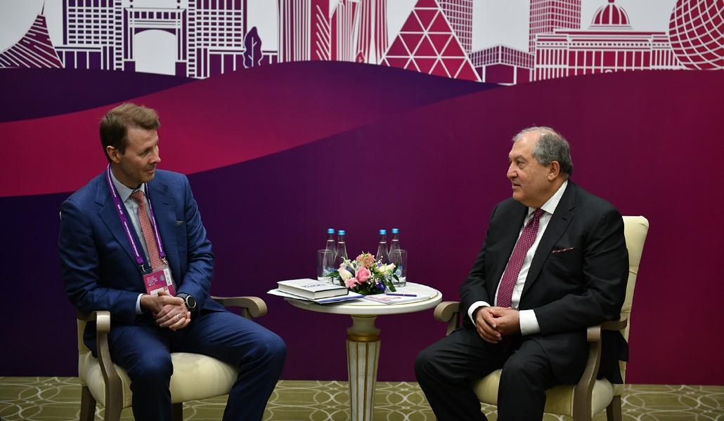 Support A1+!President of Armenia Armen Sarkissian met with Chair of the Nokia Board of Directors Risto Siilasmaa on the sidelines of the 12th annual economic forum in Kazakhstan.