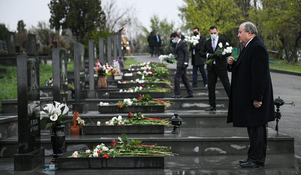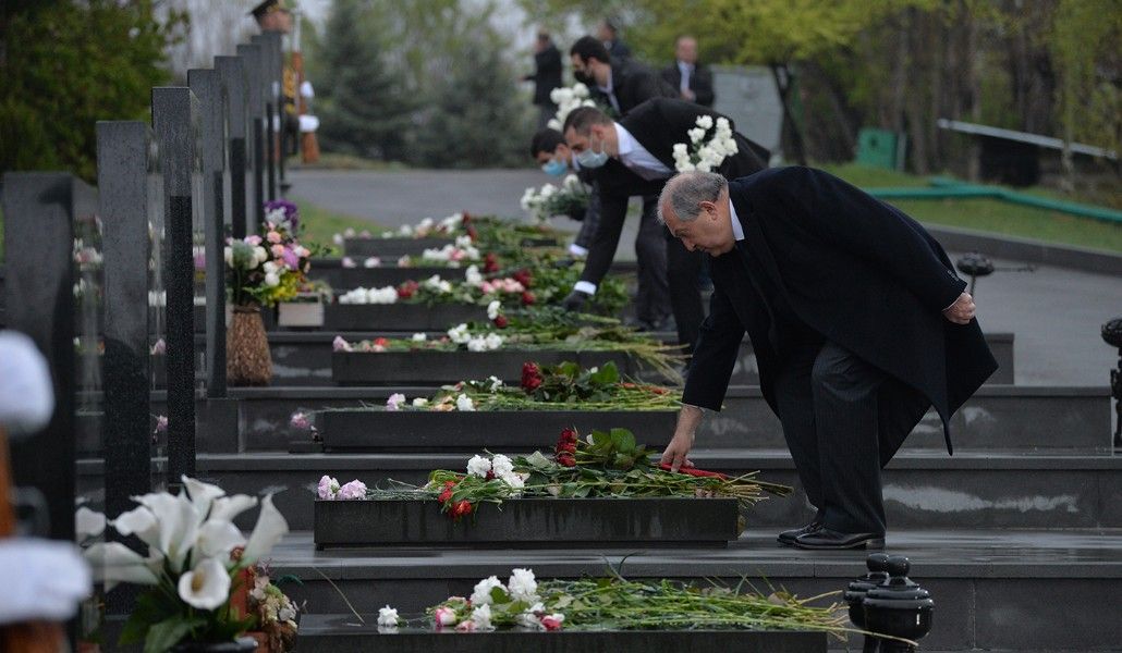 Support A1+!President of Armenia Armen Sarkissian visited today the Yerablur Military Pantheon to pay tribute to the memory of soldiers fallen during the 2016 April four-day war.