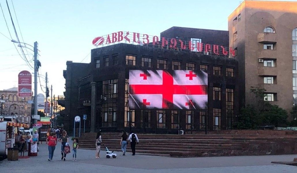 Support A1+!On the initiative of the Ambassador of the Republic of Armenia to Georgia Ruben Sadoyan, today, on the day of the Georgian National Day, the billboards of the streets of the city of Yerevan were illuminated with the colors of the Georgian flag.