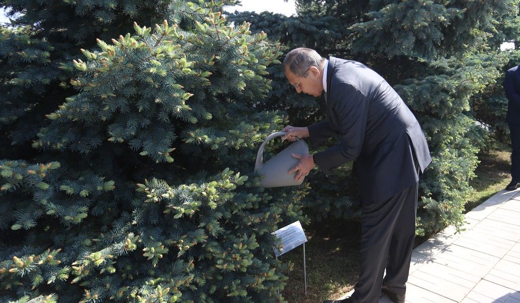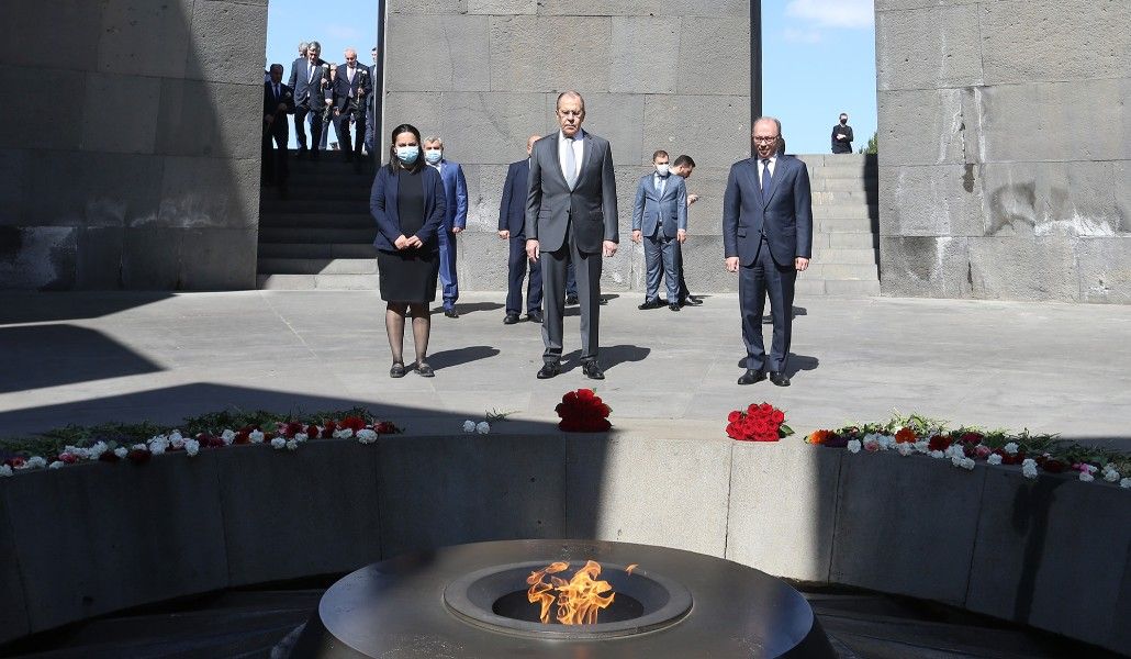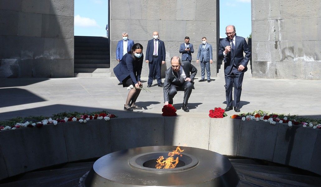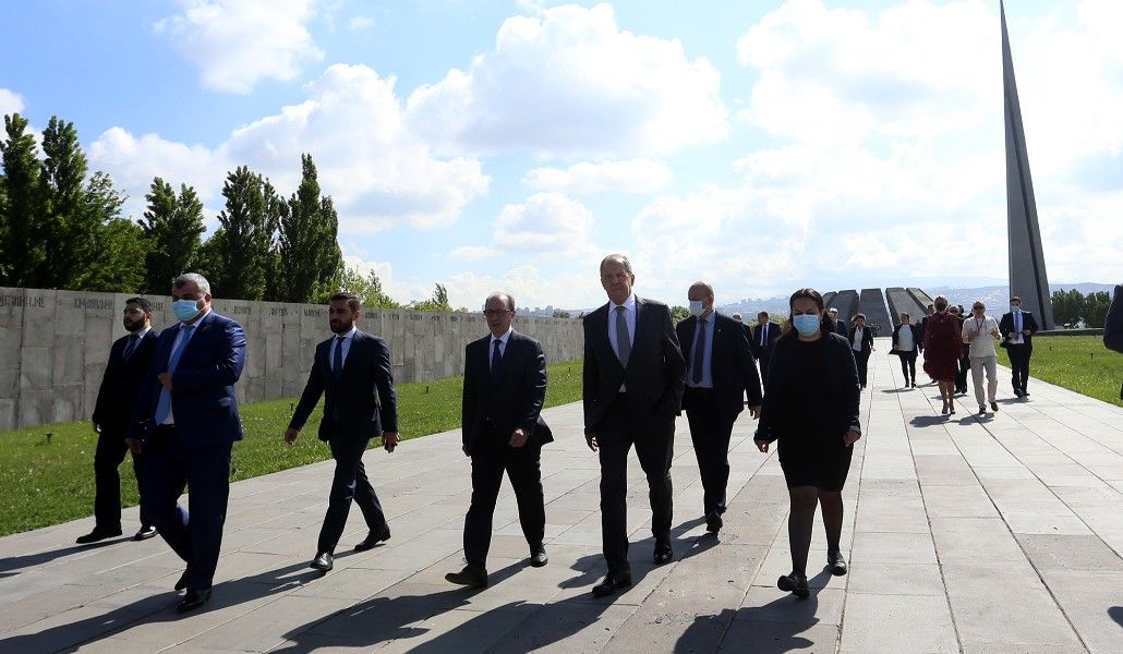 Support A1+!Sergey Lavrov, Minister of Foreign Affairs of Russia accompanied by the Acting Minister of Foreign Affairs of Armenia Ara Aivazian, visited the Memorial complex of the Armenian Genocide and paid tribute to the memory of the Holy Martyrs.After the ceremony of laying flowers to the Eternal Fire, S.V. Lavrov watered the spruce he planted on the Memory Alley in 2007