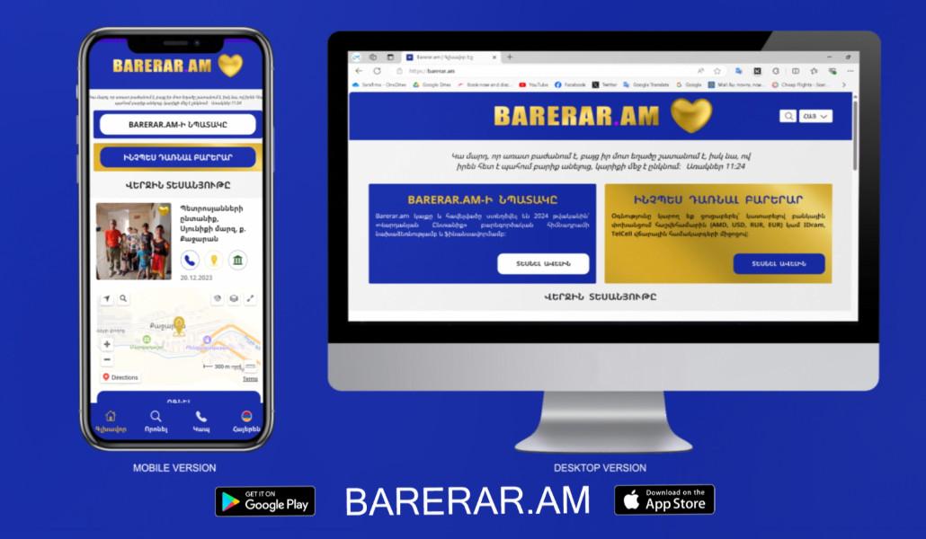 With the initiative and financing of the «Vardanyan Family» charity foundation, a new charitable platform was created - the website and application Barerar.am, its purpose is to provide direct assistance to families in need.  The platform presents beneficiary (socially disadvantaged) families with minor children and living in extremely difficult conditions. The donation from the benefactor reaches the families directly, without mediation of any individual or organization.