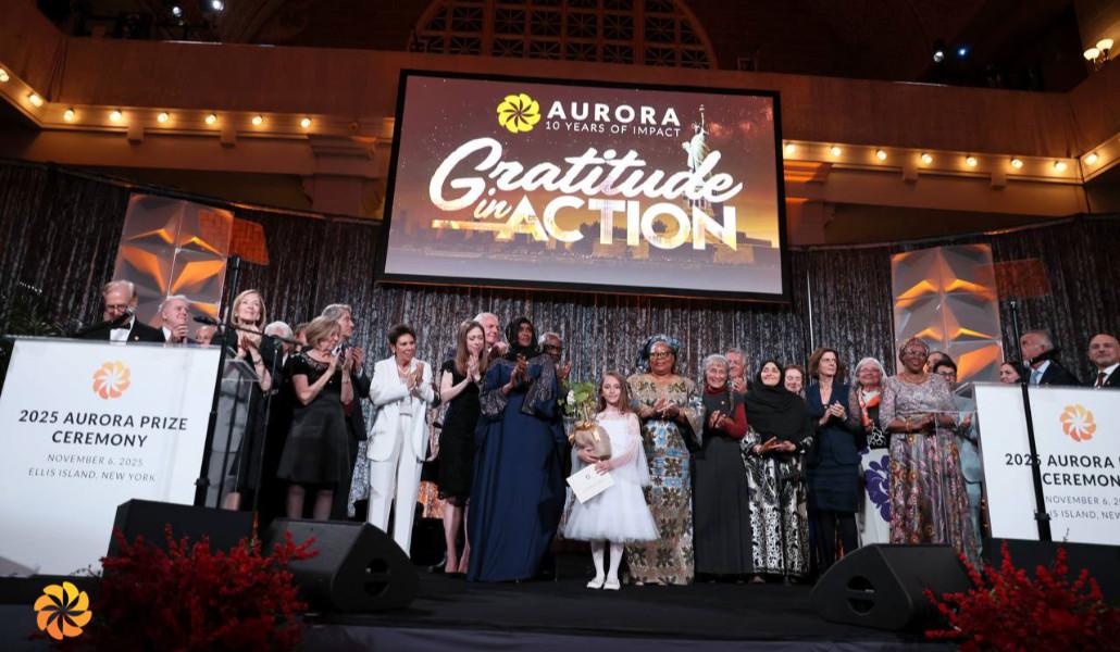 Photo: 2025 Aurora Prize Ceremony on Ellis Island, New York. November 6, 2025. © Victor Boyko/Getty Images