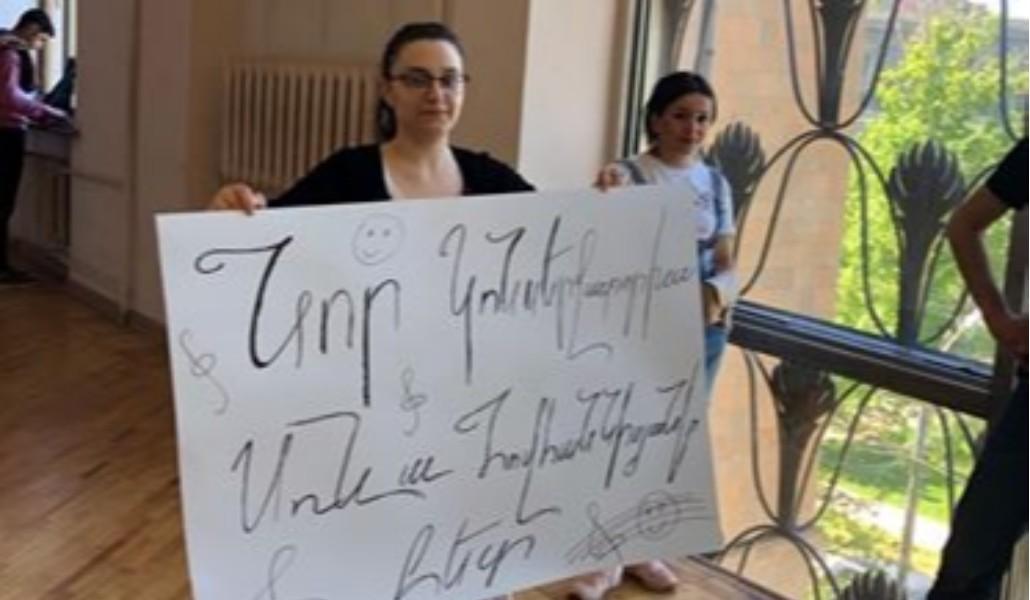 Մինչ ներսում ընթանում է ռեկտորի ընտրությունները, դրսում ուսանողները ակցիա են անում՝ սատարելով ռեկտորի պաշտենակատար Սոնա Հովհաննիսյանին: