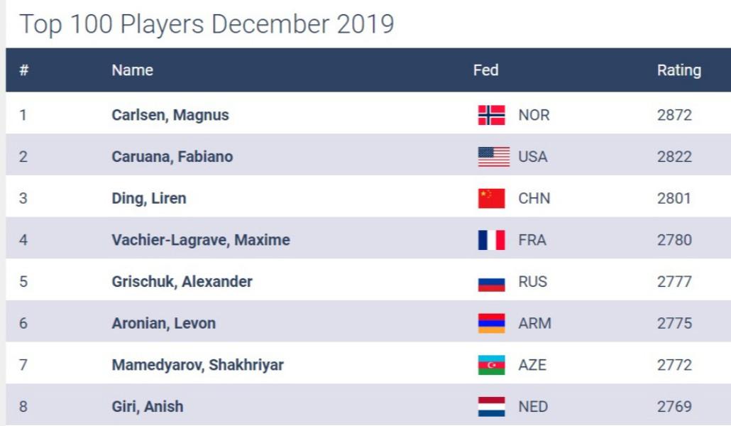 Աջակցիր «Ա1+»-ինՇախմատի միջազգային ֆեդերացիան հրապարակել է վարկանիշային նոր աղյուսակը: