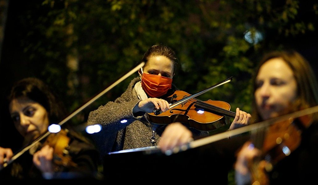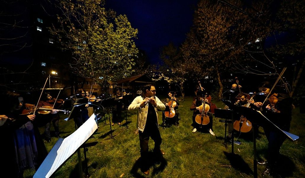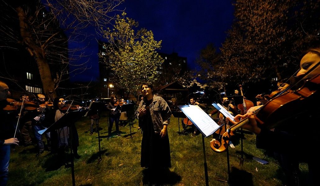 Նույնիսկ՝ Մնա տանը՝ Արտակարգ դրության օրերին երաժշտությունը հասավ երեւանյան բակեր։ Պատուհաններից հանդիսատեսը հուզված ծափահարեց։ Շատերն ափսոսացին, որ երաժշտական խմբերն իրենց բակ չեն եկել, շատերն հուզվեցին համակարգչի առաջ՝ ֆեյսբուքյան ուղիղ եթերում հետեւելով երաժիշտների հուզիչ կատարումներին։ Ու նույն ժամին․․․ ու չգիտեիր որ կատարումը լսել։ Օպերայի եւ բալետի թատրոնի երաժիշտներն էլ միացան այս ֆլեշ մոբին տնից՝ իրենց երաժշտական կատարումներով։