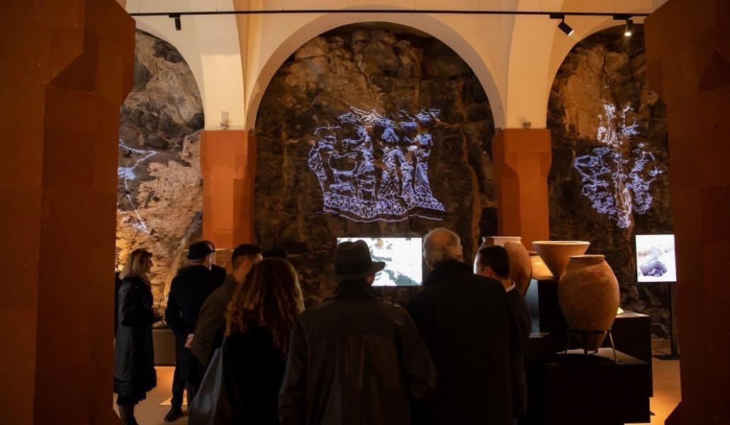 Թանգարանի կենտրոնական ցուցասրահ հասնելու համար նախ պետք է Մհերի դռնից ներս մտնել․ Վանում գտնվող այդ կոթողի նախատիպով էլ կառուցվել է նորաբաց թանգարանի մուտքը, որն ուրարտական գետնուղով տանում է դեպի քարանձավակերտ ցուցասրահ, ճիշտ եւ ճիշտ այն միջավայրը, որտեղից ծնունդ է առել գինին։