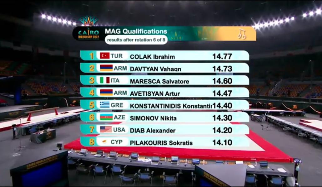 Աջակցիր «Ա1+»-ինԵգիպտոսի մայրաքաղաք Կահիրեում այսօր մեկնարկել է սպորտային մարմնամարզության աշխարհի գավաթի հերթական խաղարկությունը: Հայաստանը ներկայացնող բոլոր չորս մարզմնամարզիկները հաղթահարեցին նախնական փուլի արգելքը և մտան եզրափակիչ: