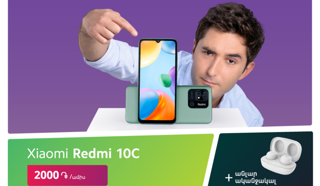 Աջակցիր «Ա1+»-ինՈւսումնական տարվա մեկնարկին, մինչև հոկտեմբերի 15-ը «Յուքոմ» ընկերությունն առաջարկում է ձեռք բերել Xiaomi Redmi 10C սմարթֆոնը լավագույն պայմաններով՝ ամսական ընդամենը 2 000 դրամով և ստանալ 2 տարվա երաշխիք, անլար ականջակալ, գեղեցիկ հեռախոսահամար ու Level Up 1700 փաթեթից 1 ամիս անվճար օգտվելու հնարավորություն։ Ի դեպ, Level Up 1700 սակագնային պլանով բաժանորդներն առանց մեգաբայթեր սպառելու կարող են օգտվել Coursera, DuoLingo, Microsoft Teams, Google Classroom և Google Meet հավելվածներից։