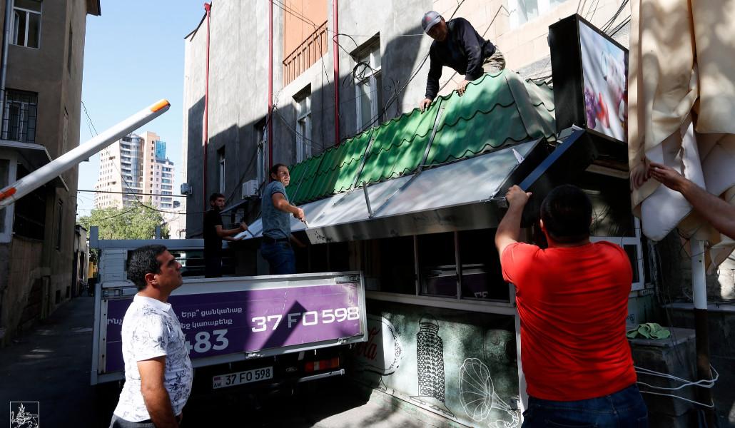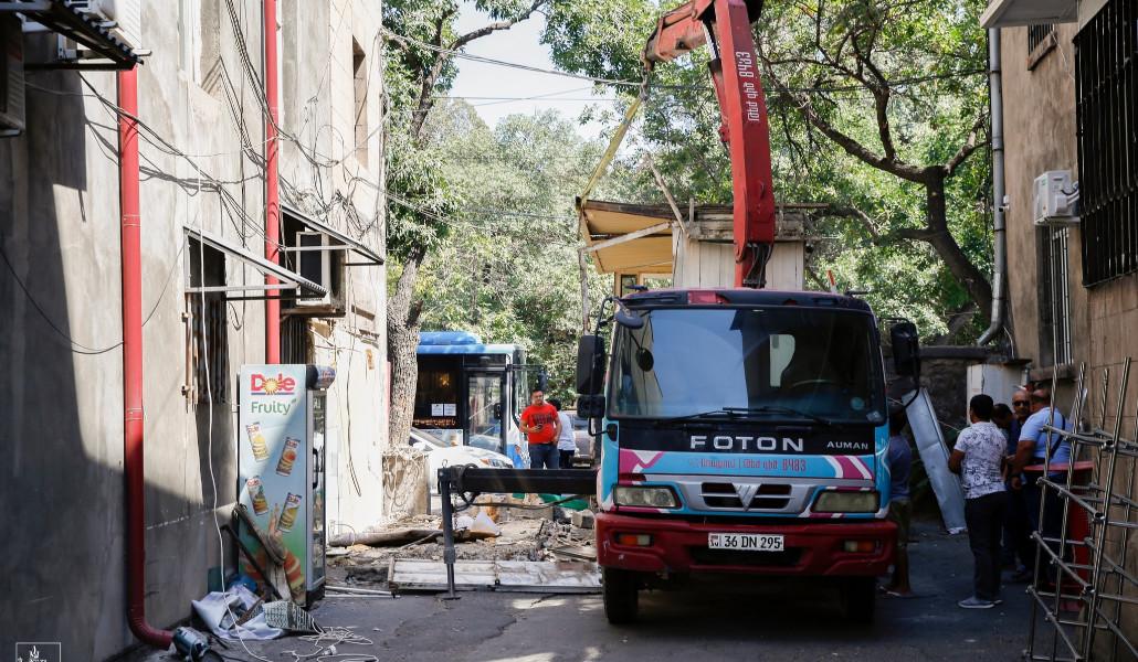 Աջակցիր «Ա1+»-ինՔանդվել է Մոսկովյան 3 շենքին կից ինքնակամ կառուցված առևտրի կրպակը