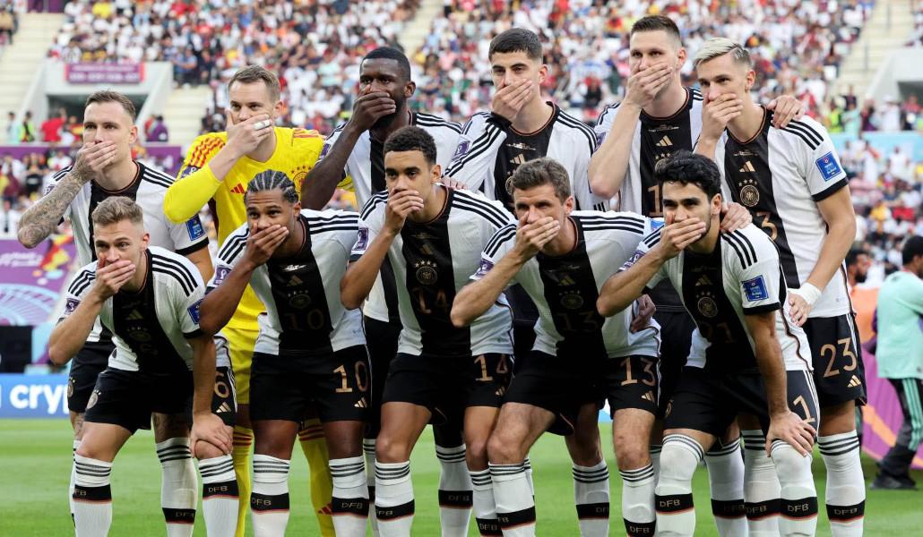 Քաթարը ՖԻՖԱ-ին չընթառաջեց նաև մարդու իրավունքների պաշտպանության հարցում և թույլ չտվեց եվրոպական մի շարք հավաքականների ավագներին ներկայանալ ծիածանագույն թևկապներով, իսկ դանիացիներին արգելեցին մարզումների ժամանակ կրել «Մարդու իրավունքները բոլորի համար են» կոչով մարզաշապիկներ: Նման որոշմանն յուրահատուկ ձևով արձագանքեցին գերմանացի ֆուտբոլիստները, որոնք առաջին խաղից առաջ թիմով լուսանկարվելիս ձեռքով փակել էին իրենց բերանները: Սակայն, դա լուրջ տարաձայնություն էր առաջացրել հենց Գերմանիայի ընտրանու ներսում, քանի որ որոշ ֆուտբոլիստներ չէին ցանկացել միանալ այդ ակցիային: