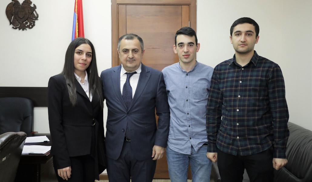 ՀՀ կրթության, գիտության, մշակույթի և սպորտի նախարարի տեղակալ Կարեն Գիլոյանն այսօր ընդունել է գրոսմայստերներ Շանթ Սարգսյանին, Հայկ Մարտիրոսյանին և կանանց միջազգային վարպետ Մարիամ Մկրտչյանին: