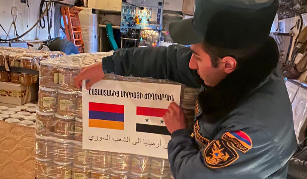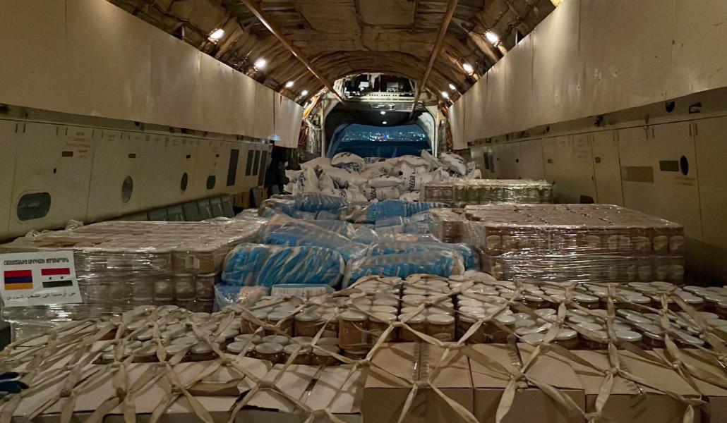Բեռը ներառել է սնունդ և դեղորայք: Այն Սիրիա է ուղարկվել Երևանի «Էրեբունի» օդանավակայանից: