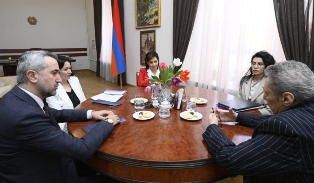 Հանդիպմանը ներկա են եղել նաև ՀՀ ԿԳՄՍ նախարար Ժաննա Անդրեասյանը և նախարարի տեղակալ Արա Խզմալյանը: