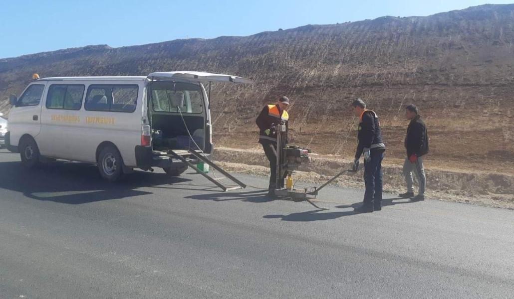 Վերակառուցվող ճանապարհահատվածում կատարվել է բնահողի խտացման ստուգում, ինչպես նաև տեղադրված և խտացված խոշորահատիկ ասֆալտբետոնե շերտից կեռնային նմուշի հորատում: