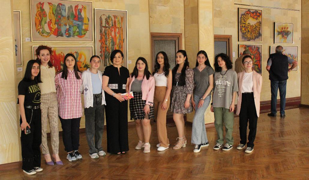Ութ տարի առաջ, Արմենուհի Սաղդասարյանը հաճախել է բատիկ-մետաքսանկարչության դասընթացների՝ նկարելու տեխնիկա սովորելու համար: Որքան նուրբ է կտավի հիմք հանդիսացող՝ մետաքսյա կտորը, նույնքան հեքիաթային՝ թռչնագրերի երկխոսությունը:
