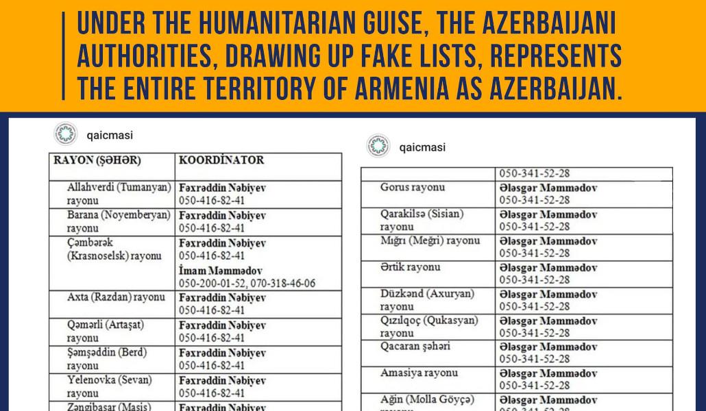 Մարդասիրական քողի ներքո ադրբեջանական իշխանությունը, կեղծ ցուցակներ