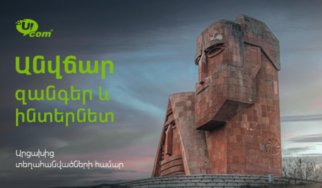 Աջակցիր «Ա1+»-ինՀենց այս պահին «Յուքոմ» ընկերությունն Արցախից բռնի տեղահանված հայրենակիցներին առաջարկում է միանալ շարժական կապի ծառայության Level Up 1800 կանխավճարային սակագնային պլանին և 6 ամիս շարունակ անվճար օգտվել նշյալ սակագնային պլանի ներառումներից։ Իսկ վաղվանից՝ սեպտեմբերի 28-ից ՀՀ ժամանող արցախահայերը կկարողանան 6 ամիս անվճար օգտվել նաև Level Up 2900 կանխավճարային սակագնային պլանի ներառումներից։
