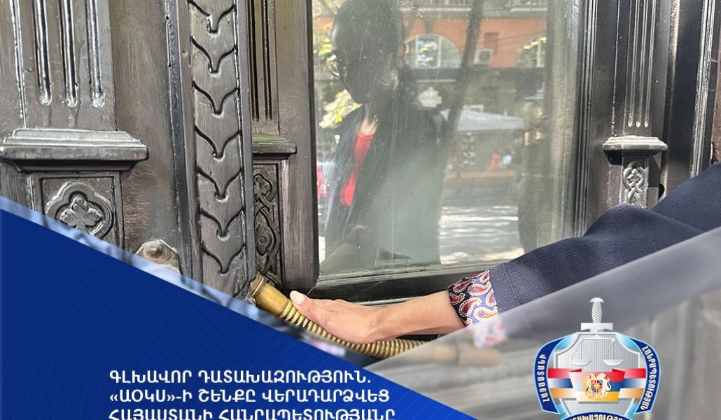 «ԱՕԿՍ»-ի շենքը վերադարձվեց Հայաստանի Հանրապետությանը․ Գլխավոր դատախազություն