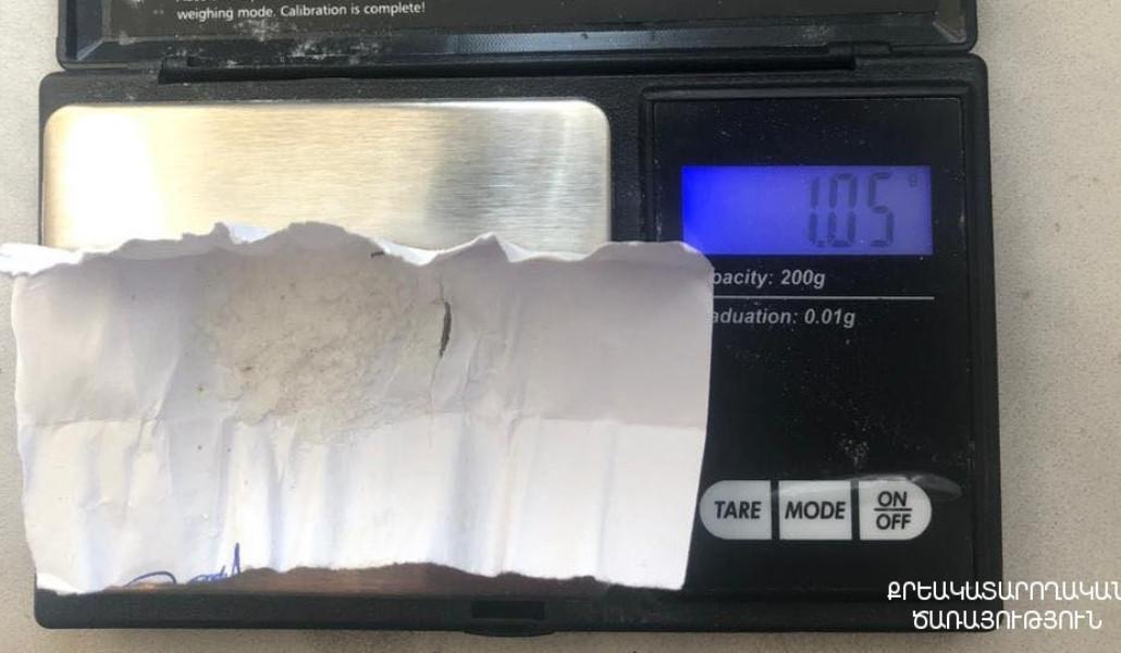 Արդյունքում՝ կնոջ ներքնազգեստի միջից հայտնաբերվել է թղթե փաթեթ՝ սպիտակ, բյուրեղանման զանգվածով, որի ընդհանուր քաշը կազմել է 1․05 գրամ։