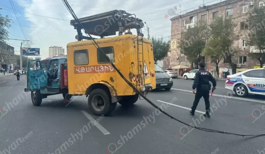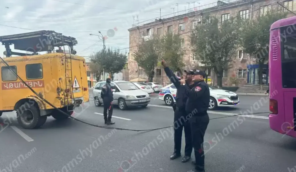 Կոմիտասի պողոտայում տրոլեյբուսի հոսանքալարերը պոկվել, վնասել են էլեկտրալարերն ու կախվել ճանապարհին
