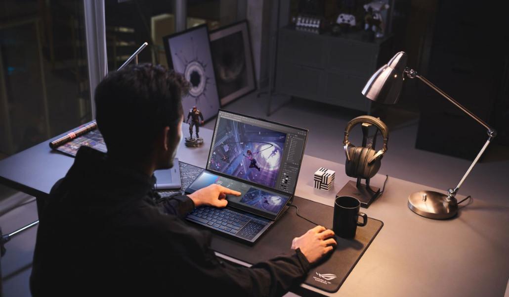 AMD Ryzen 9 7945HX պրոցեսորով և NVIDIA GeForce RTX 4090-ով աշխատող ROG Zephyrus Duo 16-ն ունի հավելյալ ScreenPad Plus էկրան, որը մեծացնում է խաղերի և ստեղծագործական աշխտանքի հնարավորությունները: Ավելի քան 360 խաղերում DLSS-ի աջակցությամբ RTX 40 առաջադեմ գրաֆիկական քարտը կօգնի ձեզ խաղալ խաղային աշխարհի ամենավերջին հիթերը։ Այս ամենը ամենաբարձր կարգավորումներով և ճառագայթների լուսածրմամբ։ Դա նաև կավելացնի ձեր նոթբուքի մարտկոցի կյանքը՝ օպտիմալացնելով խաղի կարգավորումները GeForce Experience-ում մեկ հպումով: Բացի դրանից, այս նոթբուքը թույլ է տալիս իրականացնել ձեր ամենահավակնոտ ստեղծագործական գաղափարները RTX գրաֆիկական քարտի միջոցով ավելի քան 110 գրաֆիկական հավելվածներում։ Դա հնարավոր է գրաֆիկական քարտերում արագացված ապարատային ուղու լուսածրման և արհեստական բանականության շնորհիվ: