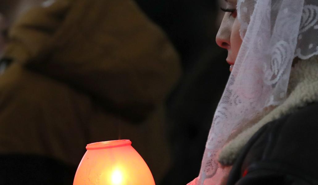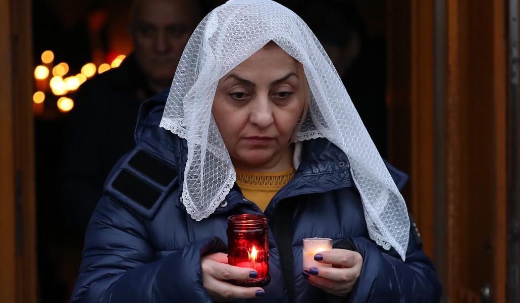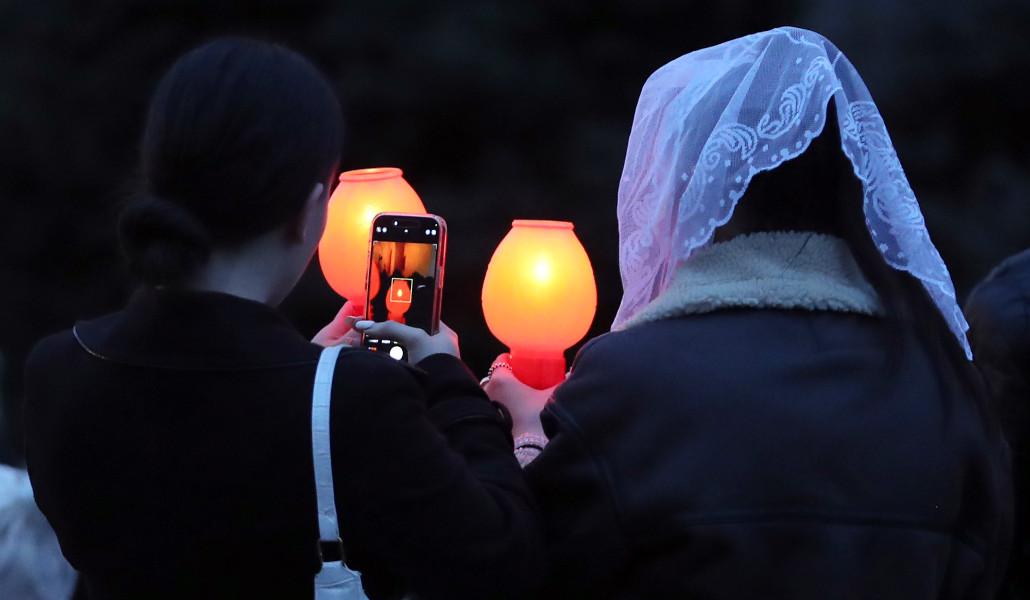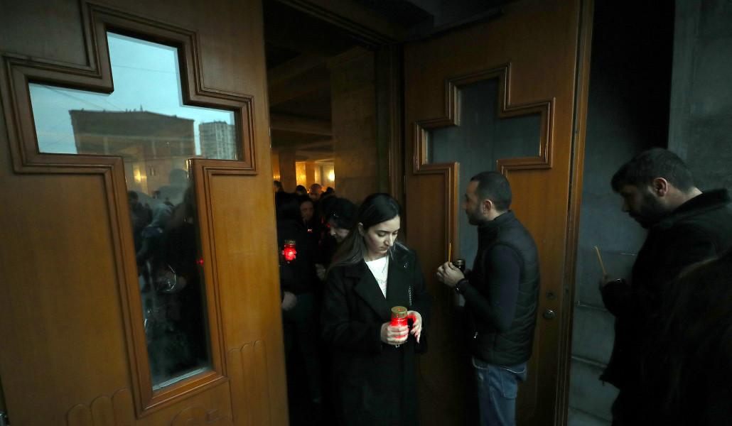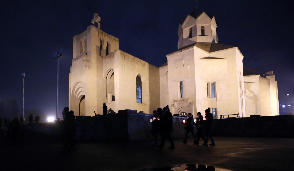 Մարդիկ վառված մոմեր են տանում Երևանի Սուրբ Գրիգոր Լուսավորիչ Մայր տաճարից