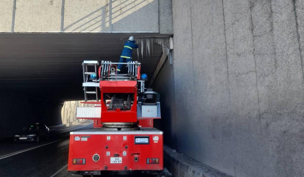Առատ ձյան տեղումներով և ջերմաստիճանի կտրուկ նվազեցմամբ պայմանավորված՝ հունվարի 26-ից 28-ը Երևան քաղաքի Արաբկիր, Կենտրոն, Նոր Նորք, Քանաքեռ-Զեյթուն, Ավան, Աջափնյակ, Մալաթիա-Սեբաստիա վարչական շրջաններում փրկարարներն իրականացրել են կամուրջներից, թունելներից և վերգետնյա անցումներից կախված սառցալեզվակների հեռացման աշխատանքներ։