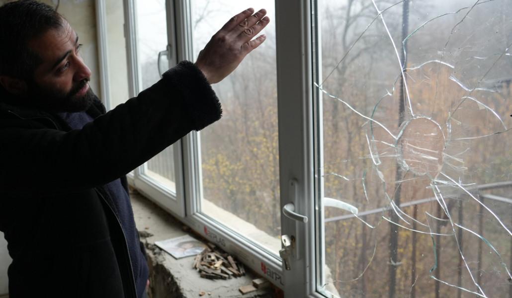 վնասվել է ադրբեջանական կրակոցից: Տունն ադրբեջանական դիրքից ուղիղ գծով 100