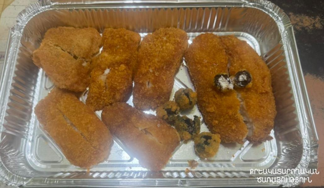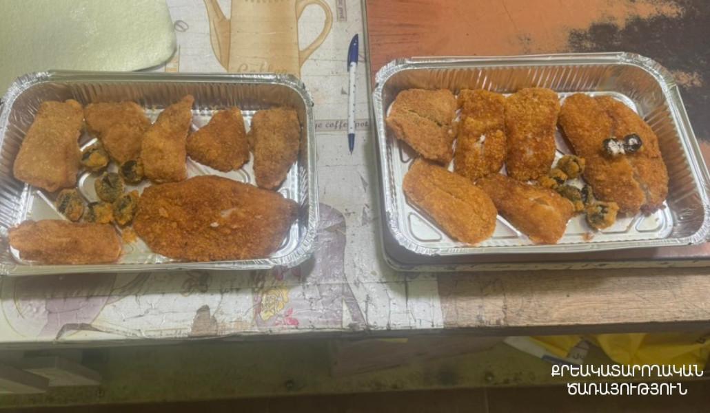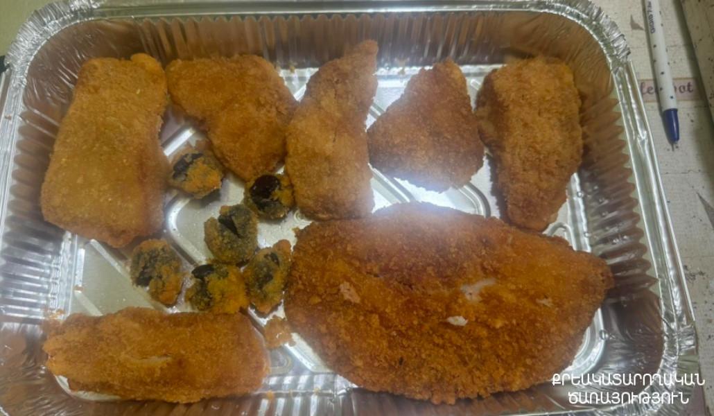 Հանձնուքում առկա ձկան կոտլետներով երկու տարաների մեջ եղել է նաև պաքսիմատացված 11 ձիթապտուղ, որոնցից մեկում ծառայողները հայտնաբերել են թմրամիջոցի նմանվող, սպիտակ, բյուրեղանման զանգված, իսկ մյուս ձիթապտուղներում նկատել են թմրամիջոցի նմանվող, սպիտակավուն հետքեր։
