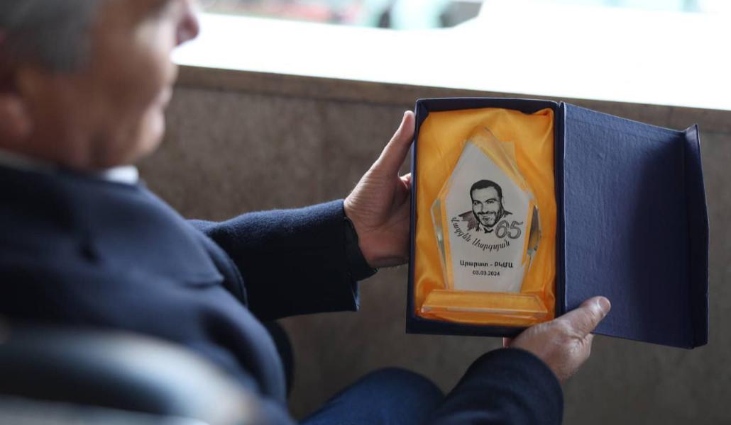 Պաշտպանության նախարար Սուրեն Պապիկյանը Արամ Սարգսյանին է փոխանցել Վազգեն Սարգսյանի դիմանկարով պատրաստված խորհրդանշական հուշանվեր-գավաթը։