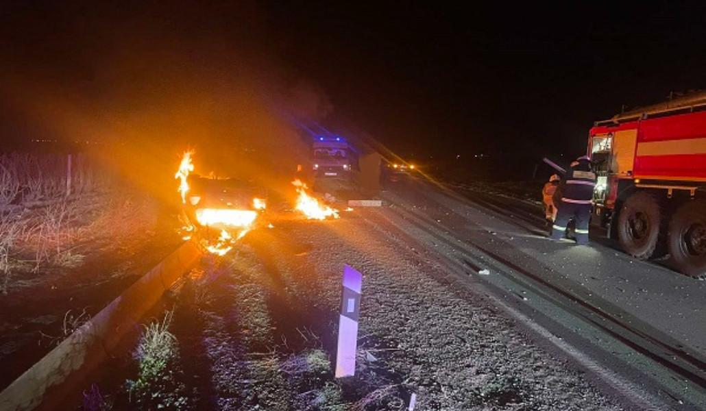 Պարզվել է, որ «Volkswagen» մակնիշի ավտոմեքենան դուրս է եկել ճանապարհի երթևեկելի հատվածից՝ շրջվել և բռնկվել։