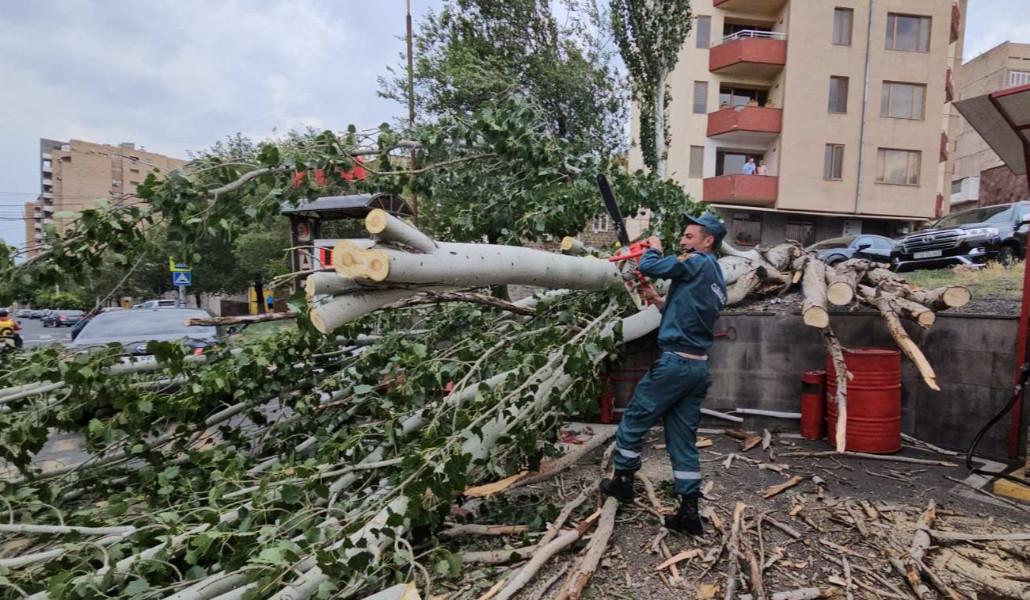 Փրկարարներն իրականացրել են ամրացման, ապամոնտաժման, տարածքների սահմանազատման, ծառերի մասնատման և հեռացման աշխատանքներ։