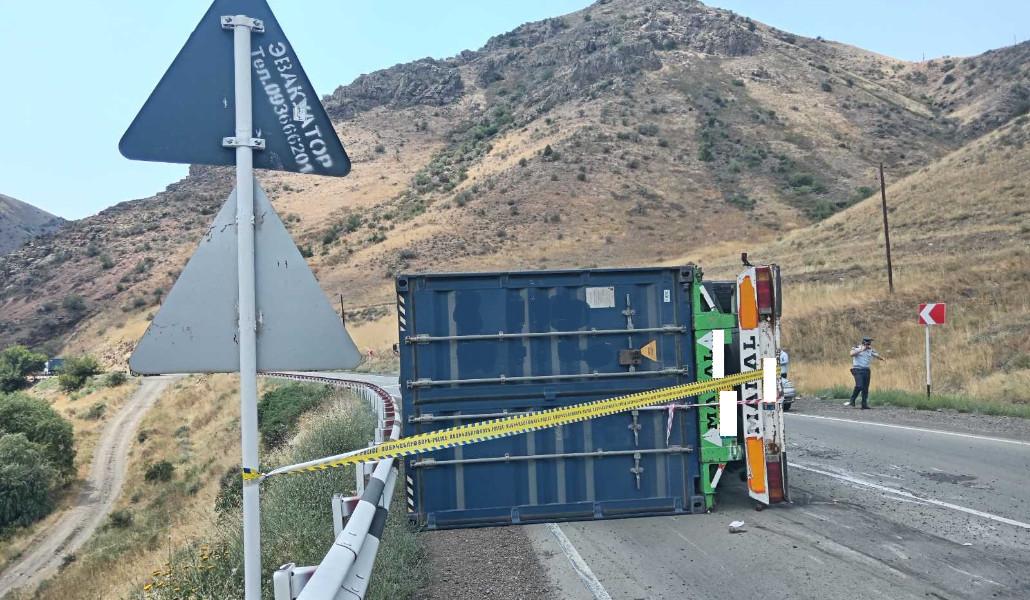 Պարզվել է, որ Մ-2 ավտոճանապարհի Երևան-Մեղրի հատվածի 143-րդ կմ-ին «Mercedes-Benz» մակնիշի կցորդիչով բեռնատարը (վարորդ՝ Հ․ Հ․, ծնված 1964 թ․) կողաշրջվել է, առկա է դիզելային վառելիքի արտահոսք. ճանապարհը դարձել է միակողմանի երթևեկելի։