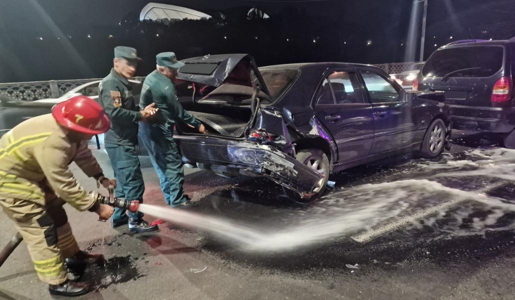 Փրկարարները հոսանքազրկել են «Mercedes-Benz» մակնիշի ավտոմեքենան և իրականացրել ճանապարհի լվացման աշխատանքներ։