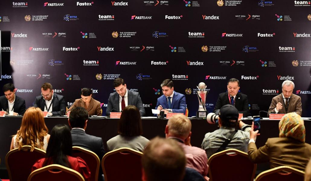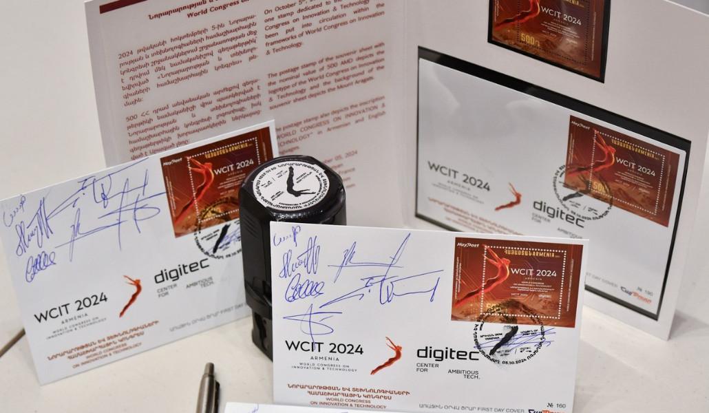 Մեկ նամականիշով գեղաթերթիկի մարումն իրականացրել են ՀՀ բարձր տեխնոլոգիական արդյունաբերության նախարարի տեղակալ Գևորգ Մելիքսեթյանը, նախարարի խորհրդական, «WCIT 2024»-ի համակարգող Նազելի Հայրապետյանը, Նորարարությունների, տեխնոլոգիաների և ծառայությունների համաշխարհային դաշինքի (WITSA) նախագահող Շան Սիան, Առաջատար տեխնոլոգիաների ձեռնարկությունների միության նախագահ Ալեքսանդր Եսայանը, «WCIT 2024/DigiTec»-ի կազմկոմիտեի գործադիր տնօրեն Հայկ Կարապետյանը, «Հայփոստ» ՓԲԸ-ի գլխավոր գործադիր տնօրենի պարտականությունները կատարող Արման Աբրահամյանը, Ֆիլատելիստների հայկական ասոցիացիայի նախագահ Հովիկ Մուսայելյանը: