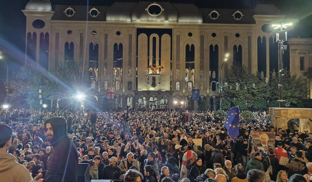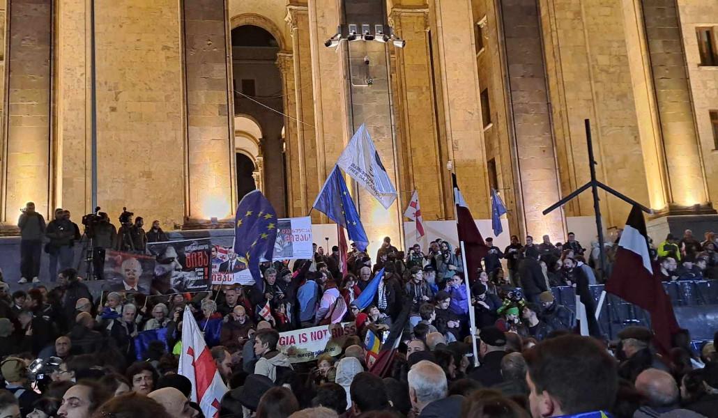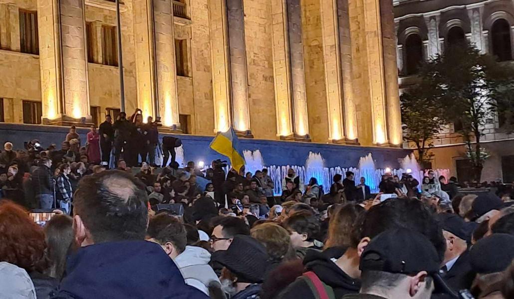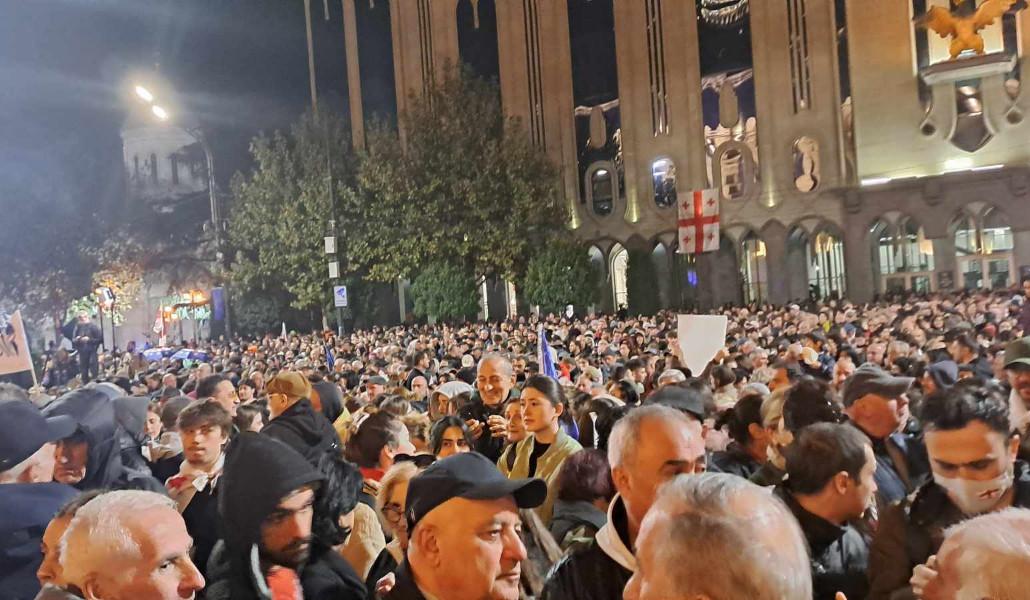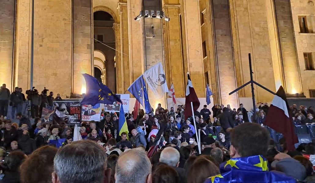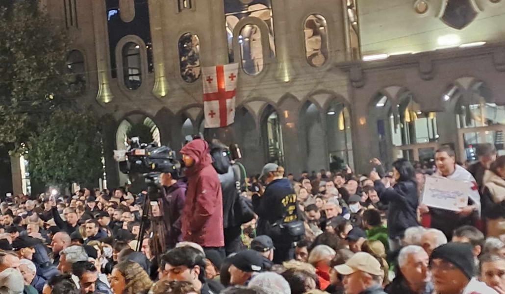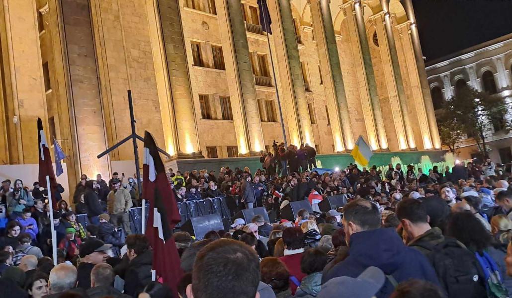 Ռուսթավելի պողոտան բազմամարդ է։ Բողոքի ակցիան մեկնարկեց Վրաստանի նախագահ Սալոմե Զուրաբիշվիլիի ժամանելուն պես։