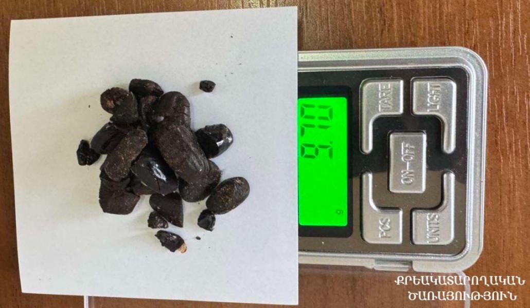 Հանձնուքում առկա պիստակների միջից ծառայողները հայտնաբերել են թմրամիջոցի նմանվող, մուգ շագանակագույն, կոշտ զանգվածներ, որոնց ընդհանուր քաշը կազմել է 9,70 գրամ։