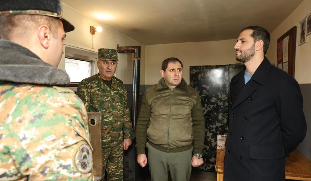 Աջակցիր «Ա1+»-ինԱմանորի նախաշեմին պաշտպանության նախարար Սուրեն Պապիկյանը, ԱԺ նախագահի տեղակալ Ռուբեն Ռուբինյանը, Տավուշի մարզպետ Հայկ Ղալումյանը բարձրաստիճան զինվորականների ուղեկցությամբ այցելել են սահմանագոտի։