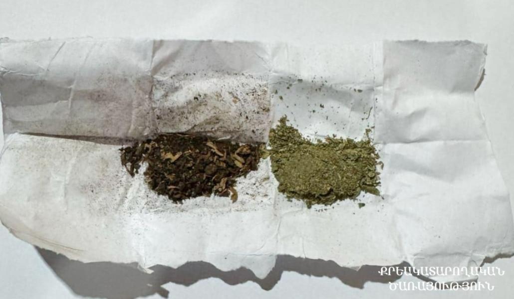 Խուզարկության արդյունքում ծառայողները հայտնաբերել են Ա․Զ․-ի բաճկոնի աստառի տակ թաքցված փաթեթ, որում առկա են եղել ընդհանուր 1,84 գրամ քաշով, թմրամիջոցի նմանվող, դեղնականաչավուն և դեղնավուն զանգվածներ։ Ա․Զ․-ն բանավոր հայտարարել է, որ հայտնաբերված զանգվածները պատկանում են իրեն, դեղնականաչավուն զանգվածը մարիխուանա է, իսկ դեղնավունը՝ թութուն։
