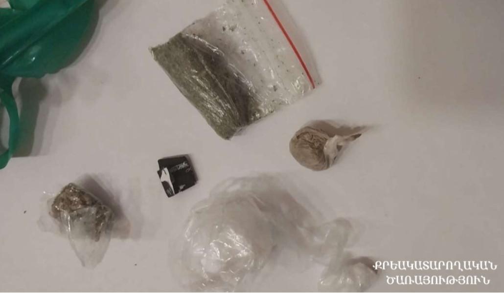 Փաթեթներում առկա են եղել մեթամֆետամին տեսակի թմրամիջոցին նմանվող, 0,3, 4 և 1,4 գրամ քաշերով, սպիտակ, բյուրեղանման զանգվածներ, մարիխուանա տեսակի թմրամիջոցին նմանվող, 3,5 և 1,7 գրամ քաշերով, դեղնականաչավուն զանգվածներ և հերոին տեսակի թմրամիջոցին նմանվող, 1,8 գրամ քաշով, շագանակագույն զանգված։