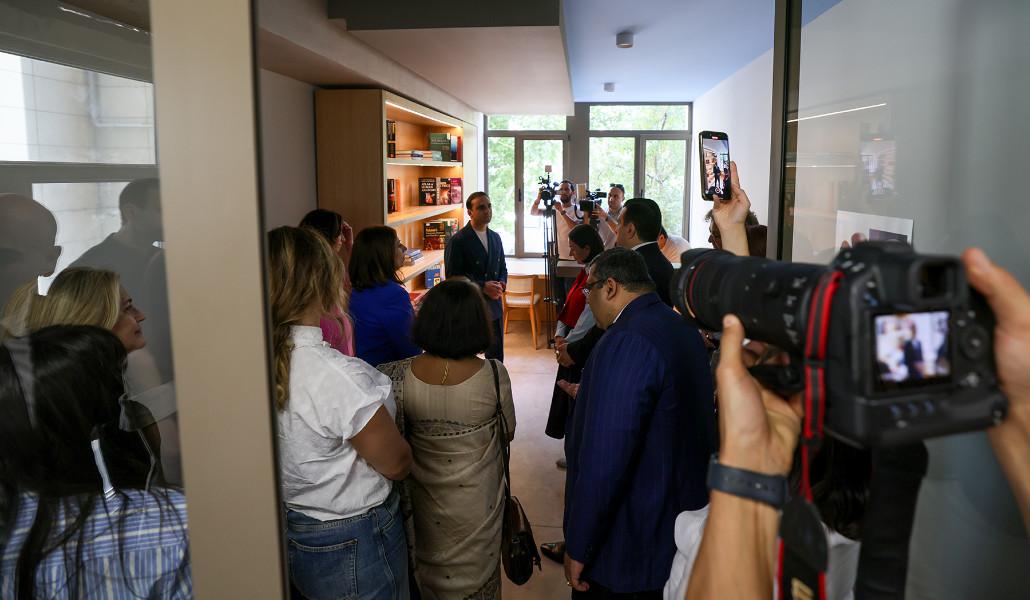 Հանդիսավոր արարողությունից հետո հյուրերը շրջայց են կատարել տարածքում, ծանոթացել ապագա գրադարանի նախատիպային սենյակին: