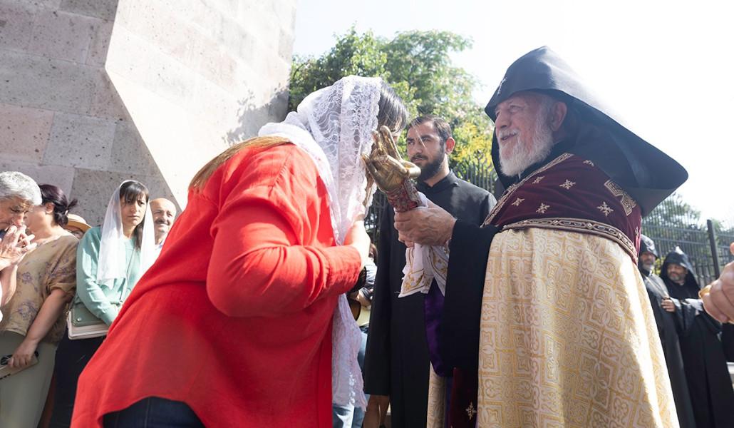 Սուրբ Գրիգոր Լուսավորչի կամարի առջև Ամենայն Հայոց Հայրապետը, սրբազան Աջով օրհնեց հոգևոր դասին և ներկա բարեպաշտ ժողովրդին՝ այն փոխանցելով Մայր Աթոռ Սուրբ Էջմիածնի լուսարարապետ Հոգեշնորհ Տ․ Անանիա վարդապետ Ծատուրյանին։