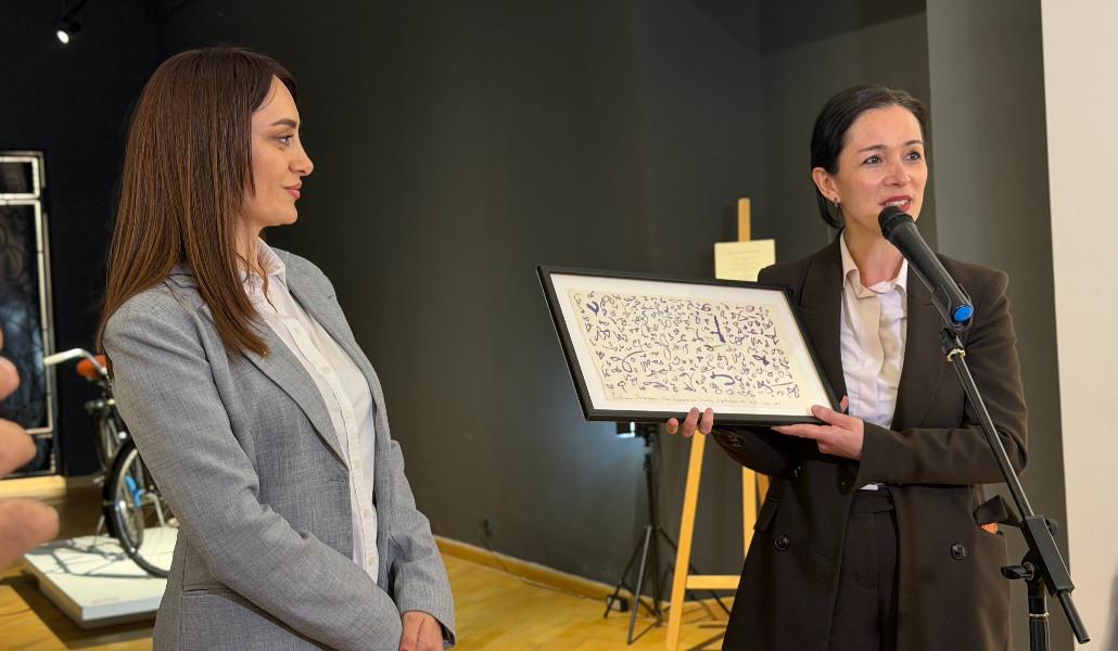 «Վիլյամ Սարոյան» հիմնադրամի նախագահ Սքոթ Սեդրակյանն առանձնահատուկ անդրադարձավ նկարին, որը նախարարը նվիրեց ԳԱԹ-ին․ «Ինչպես գիտեք՝ Սարոյանը խոսել, բայց չի գրել հայերեն։ Այս նկարի վրա պատկերված են հայերեն տառեր, որոնք կարծես արտացոլում են նրա յուրօրինակ մոտեցումը հայերենին ու մեր այբուբենին», - ասաց հիմնադրամի նախագահը։